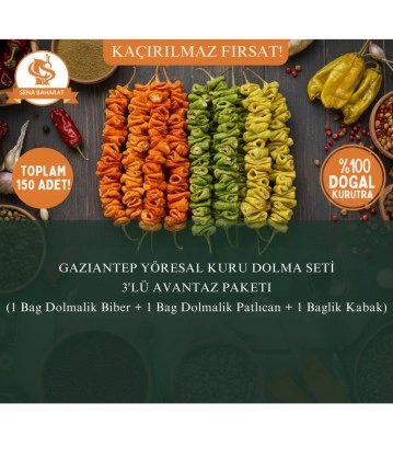 Gaziantep’in eşsiz güneşi altında geleneksel yöntemlerle kurutulan en kaliteli dolmalıklar, Sena Baharat güvencesiyle sofralarınıza geliyor. Acı sevmeyenler veya karışık dolma yapmak isteyenler için özenle hazırlanan bu 3’lü Avantaj Paketi, mutfaktaki en büyük yardımcınız olacak.